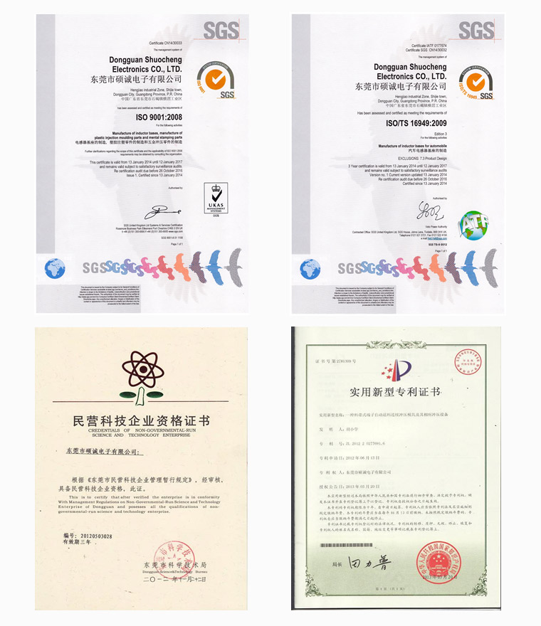 The company was launched in 2014 with the TS16949/ISO9001 international quality system certification standards, and passed, marking the formal quality standards of our products in line with internationally accepted standards. At the same time, in May 2012 the company received certification Dongguan Science and Technology Bureau for Private private technology enterprises, 2013 approved by the People's Republic of China State Intellectual Property Office have received five patents.